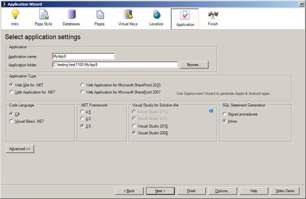 The last step in creating a new application is to give it a name and location for its files. Additionally, you can choose the type of application to create and several other high-level options.