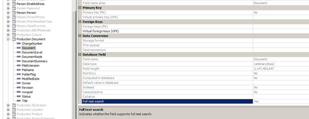 When Iron Speed Designer queries database schema, it looks for full text indexes. Fields with full-text indexes can be seen in the Databases area.
