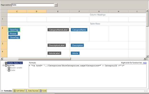 This example converts an Image control (Picture) on a Show Categories Table page into a hyperlink.
