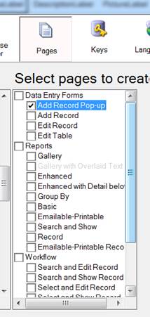Step 3a: If migrating from the version prior to V10.0 add Add Record Pop-Up pages for all used tables