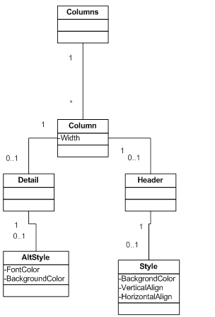 Page style-specific, language-specific and culture-specific report configuration files have the same schema. Button-specific configuration files, however, have a different schema because each Column tag in the file specifies properties for a particular column.
