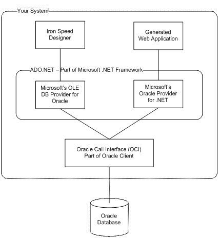 Both of these providers rely on Oracle Call Interface (OCI) that is part of the Oracle Client. The Oracle Client must be installed on your development and production system to use Oracle with Iron Speed Designer and the application.